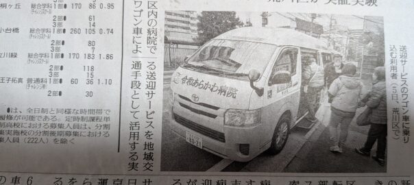先日の読売新聞多摩版に都内の荒川区が、区内の病院で行われているワゴン車による送迎サービスを地域交通手段として活用する実証実験を始めたとの記事があります。